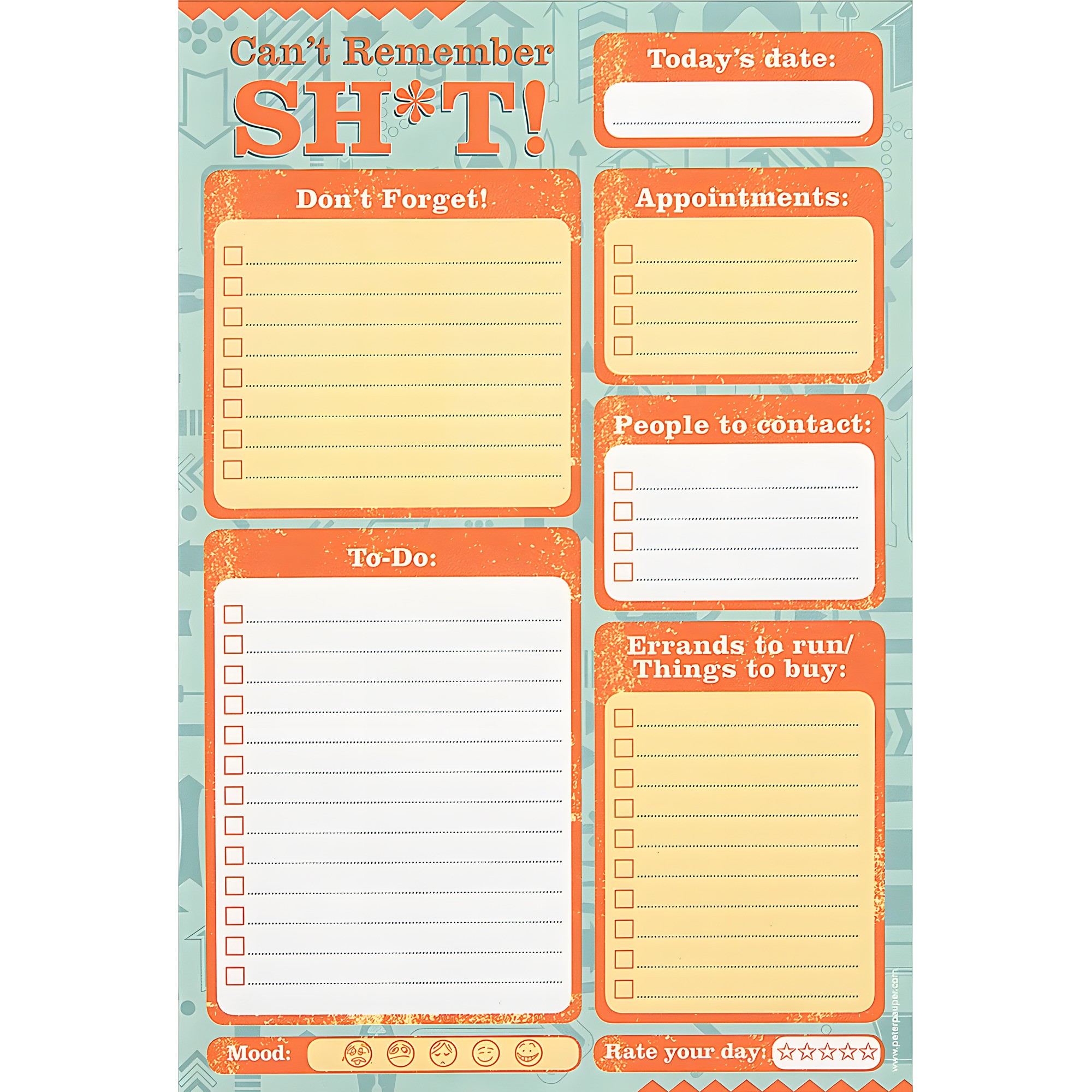 Keep your thoughts organized with the Can't Remember Shit Note Pad! This humorous pad is perfect for jotting down notes, tasks, and appointments, ensuring you never forget the little things.