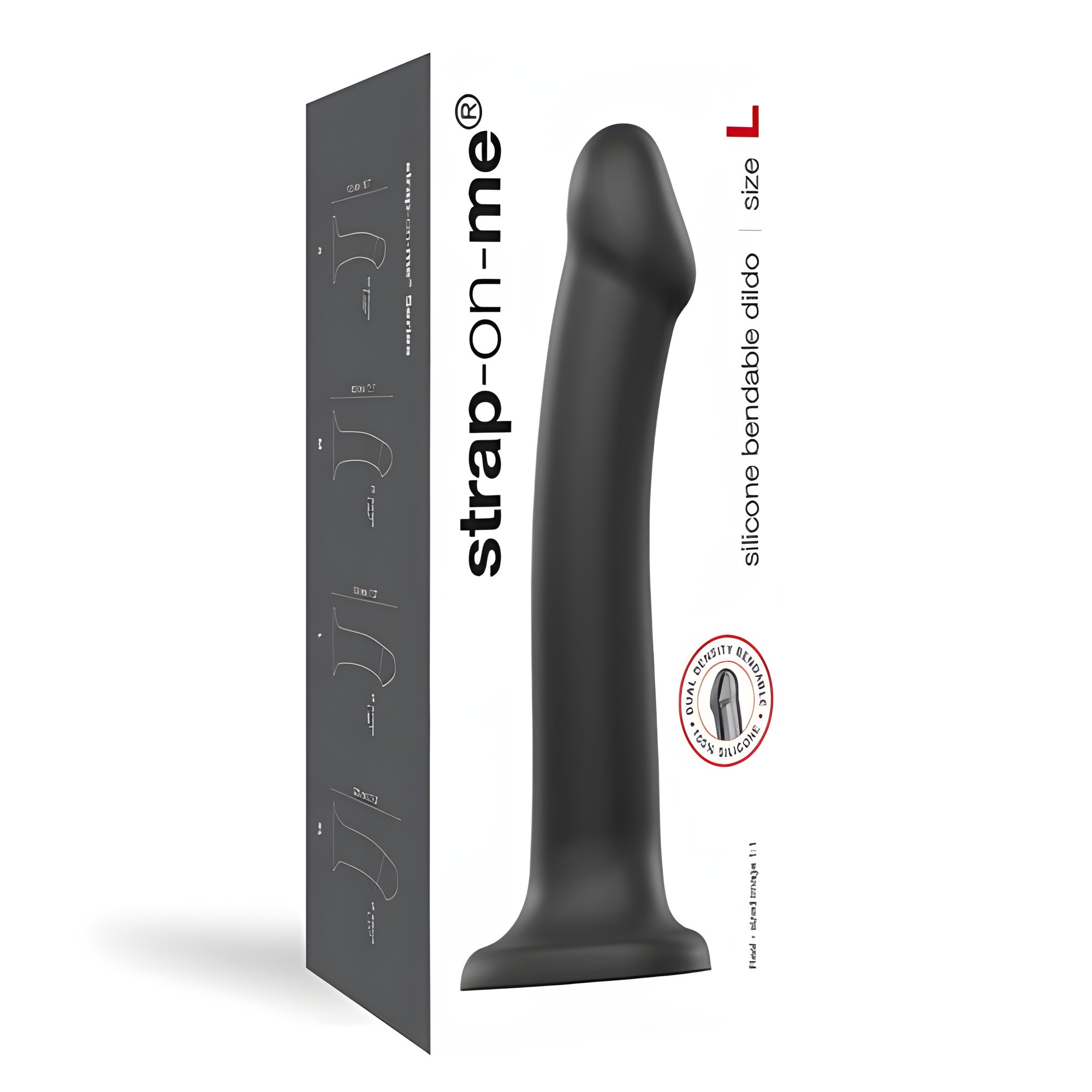 Introducing the Strap On Me Silicone Bendable Dildo in Large! This unique dildo features a dual-density design for a lifelike feel and can be bent to your desired angle for maximum pleasure.