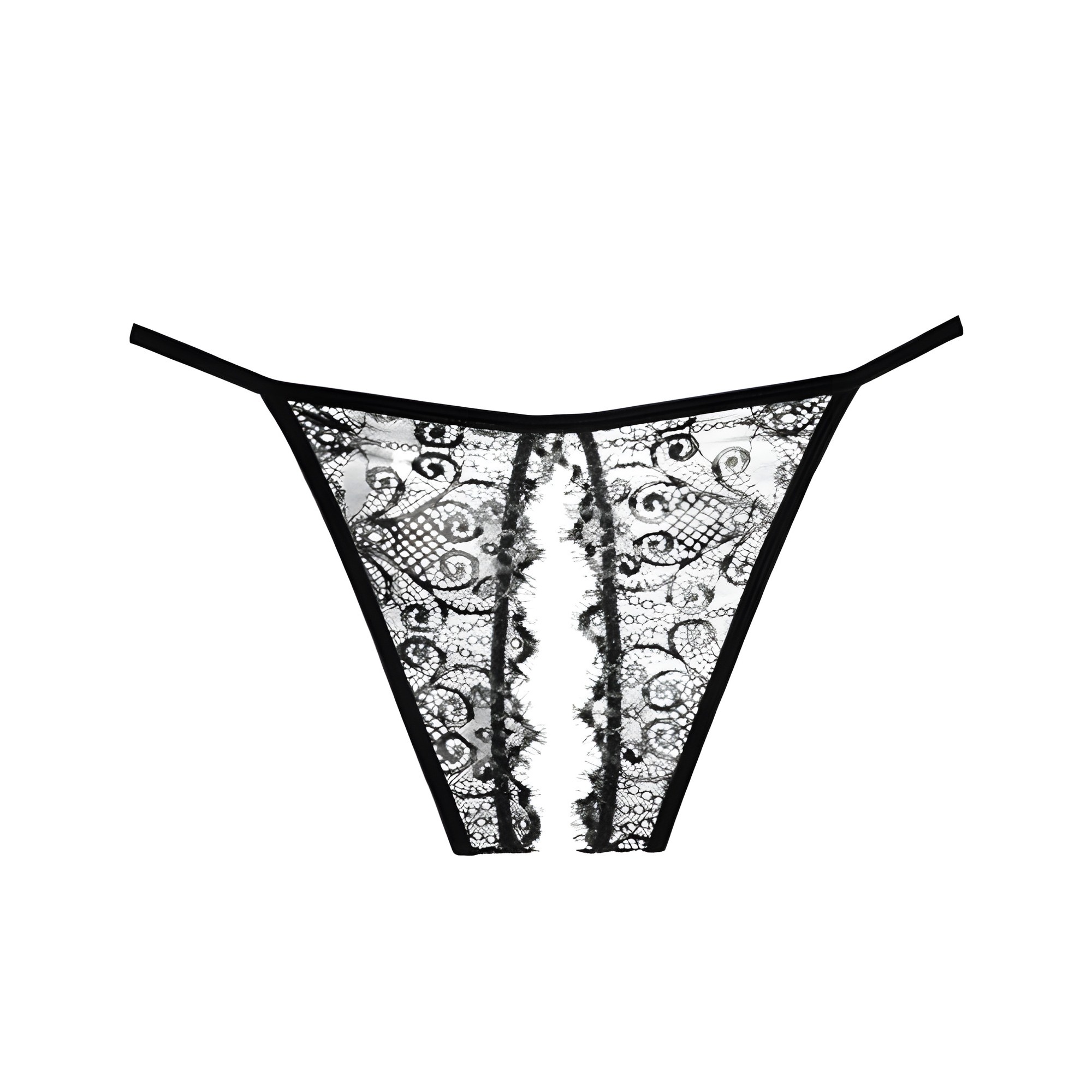 This stunning black panty features delicate lace detailing that adds a touch of allure to any outfit.