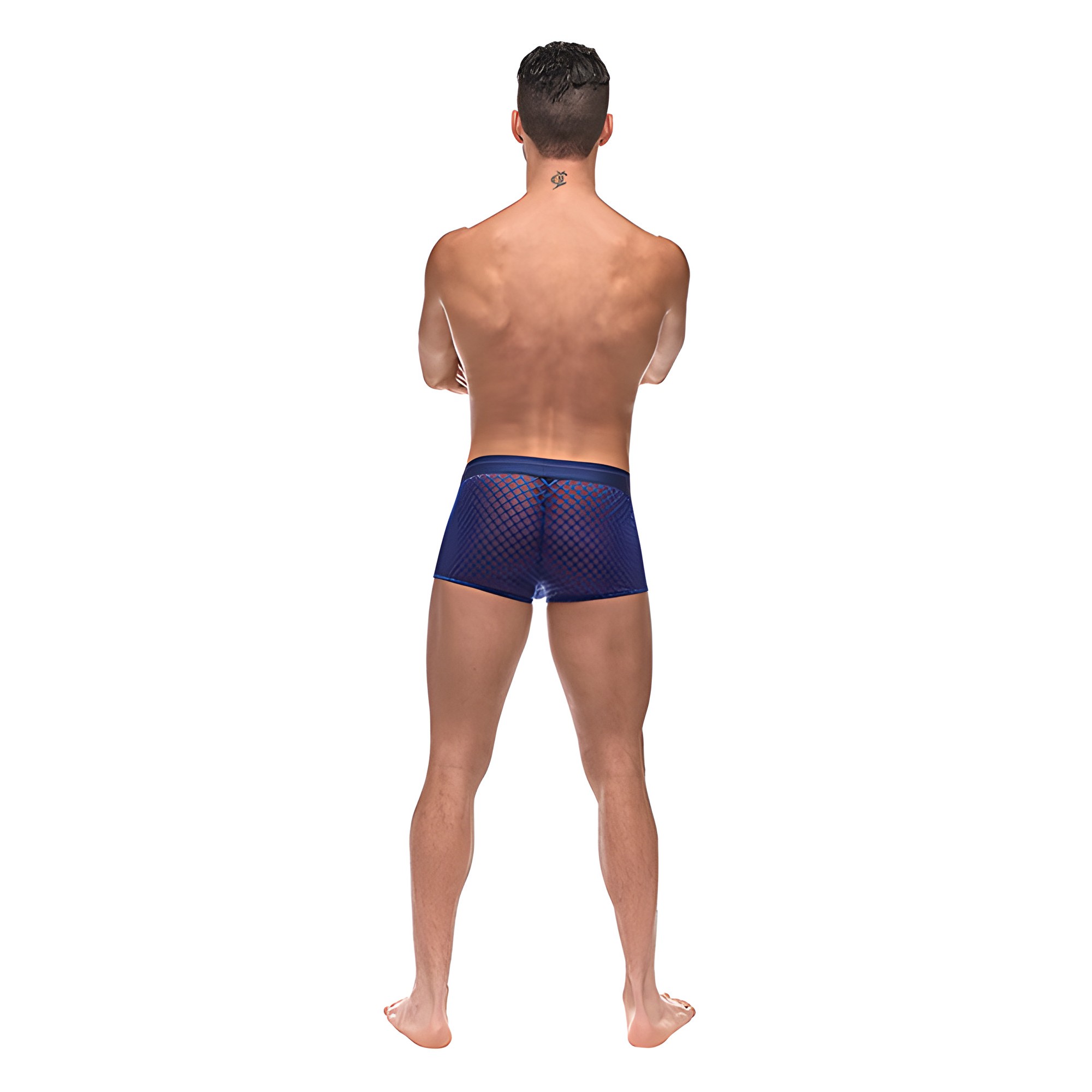 Fabricado de malla elástica transparente, cuenta con una cinturilla con marca para un ajuste cómodo.